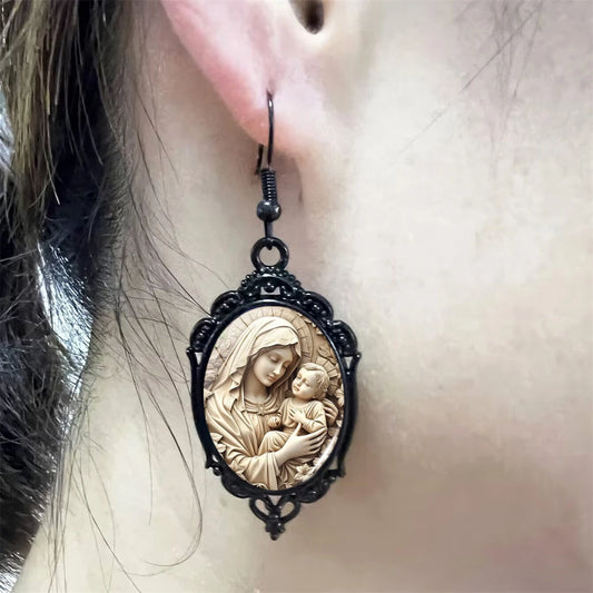 Elegant Mary Jewelry– Black Lace Oval Design with Handmade Glass Dome