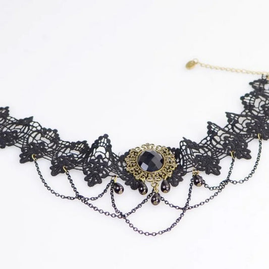 Gothic Black Lace & Beaded Choker Necklace – Sexy and Elegant Gift Accessory